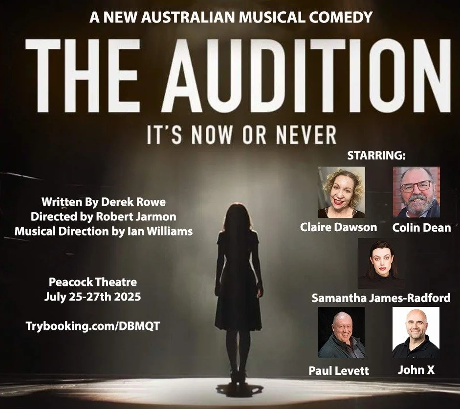 The Audition – 2 acts, 5 performers (Book, Music & Lyrics) – Commissioned by producer Malcolm Cooke, workshopped by The Marriner Group in 2024. Had its world premiere in Hobart in July 2025, staged by John X Presents…